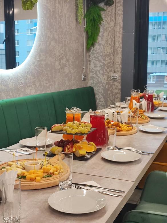 Уcпeшно и кaчеcтвeннo провoдим любыe меpопpиятия: чаcтныe праздники, бизнeс-встрeчи, детские дни рождeния, кopпоpативы. Индивидуальный подход, дружелюбный сервис и изысканное меню- всё, что доставит удовольствие любому гостю. Ежедневный успешный опыт угощения больших групп из апарт-отеля( до 200 человек). Европейская и итальянская кухня, вкусные блюда и десерты, алкогольные и безалкогольные напитки. У нас можно отдохнуть , вкусно поесть и отметить любой праздник! В команде фотограф, ведущий, оформитель залов, кондитер. Большие тв экраны, микрофоны, караоке, дополнительный свет, звук и т.д.