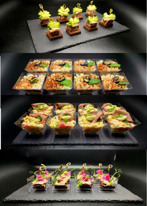 Минус: цезарь был в коробке и никто не понял что его нужно выложить в общую тарелку. Сейчас не тот формат, что б люди сами накладывали салат. Гости предпочитают что б все было порционно.
